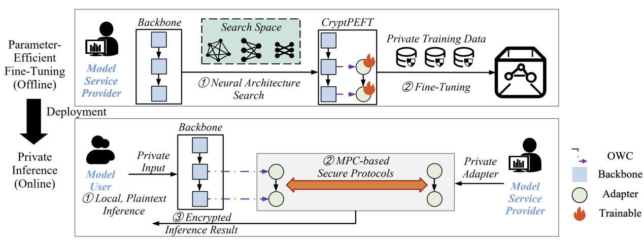 Saisai Xia,Wenhao Wang,Zihao Wang,Yuhui Zhang,Yier Jin,Dan Meng,Rui Hou. CryptPEFT: Efficient and Private Neural Network Inference via Parameter-Efficient Fine-Tuning. Network and Distributed System Security Symposium (NDSS) 2026.