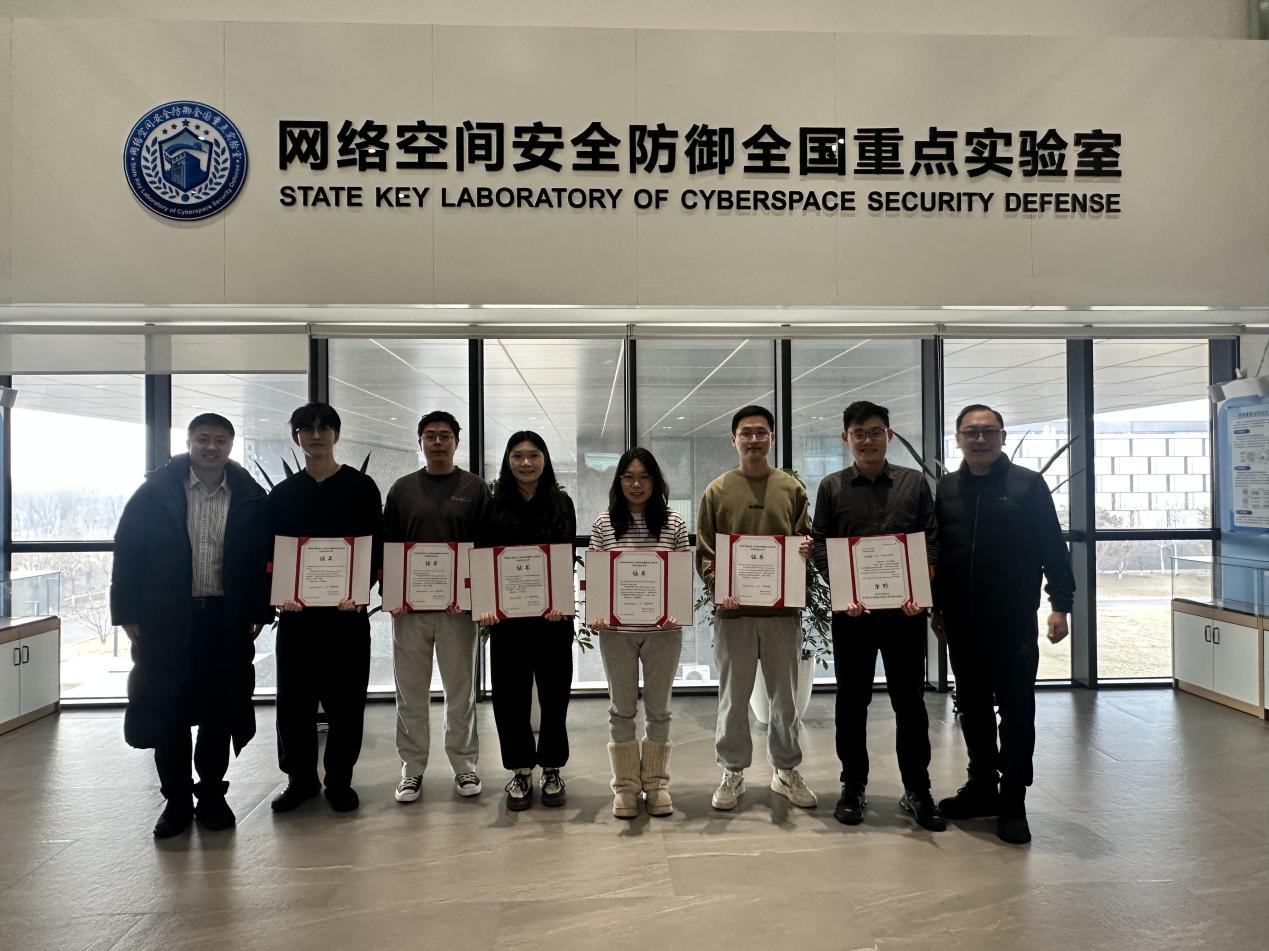 2026年1月9日,数据安全研究室举行年度优秀论文奖颁奖仪式,侯锐、陈驰等老师出席,为获奖作者颁发荣誉证书及科研奖励。